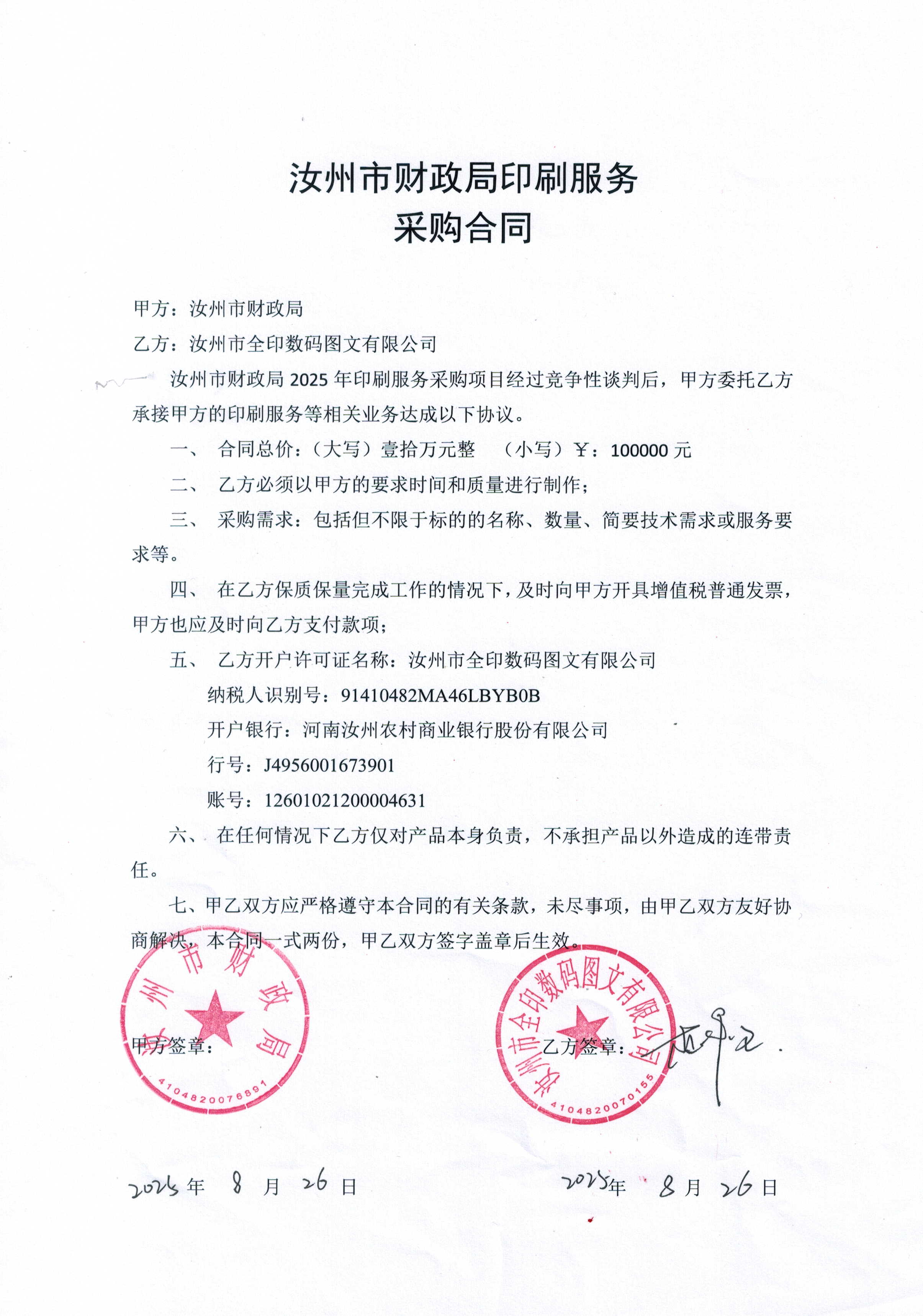 1 其他印刷服务(集采品目) ******财政局2025年印刷服务 按合同执行 按合同执行 按合同执行